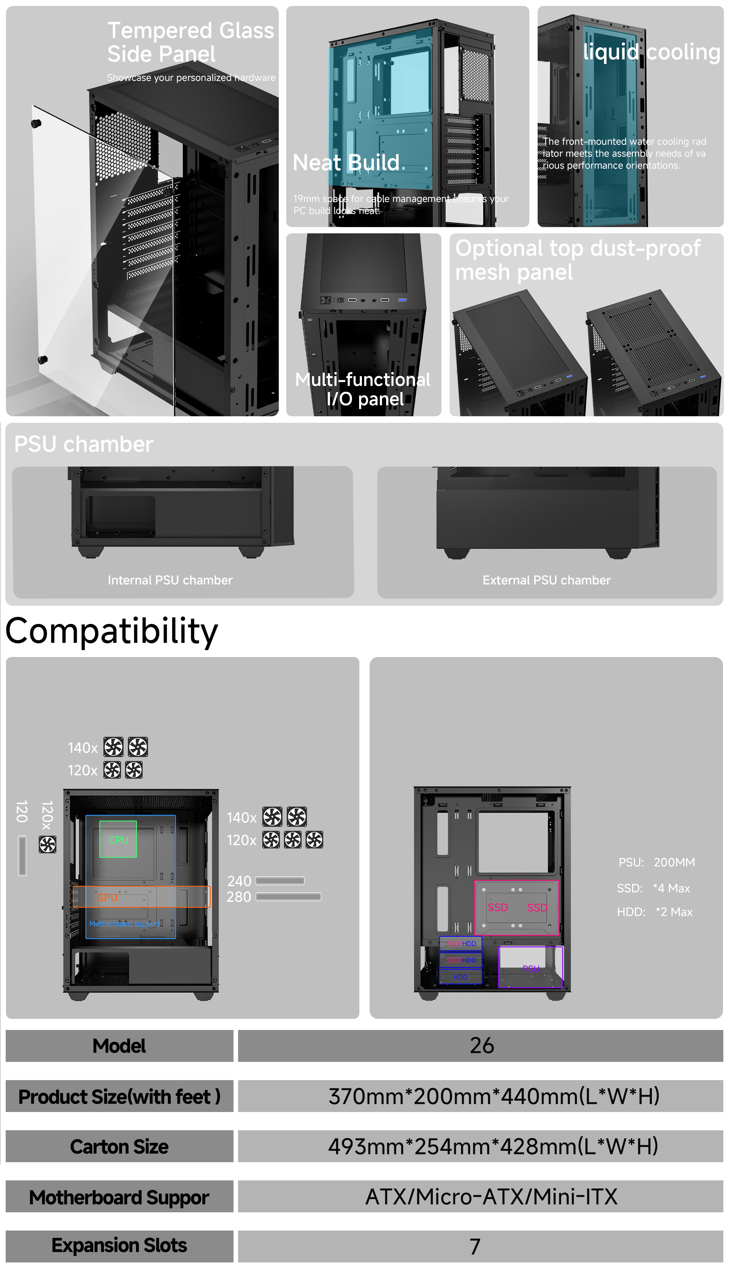 - Balances size, expandability and cooling effect, ideal for desktop gaming and daily use.